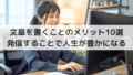 コラム文章を書くことのメリット10選│発信することで人生が豊かになる 文章を書いてみたいけれど何を書いていいかわからない…。 発信してみたいけれど、イマイチ勇気がでない…。 そんな不安はありませんか? 「文章を書くこと」は一見誰にでもできそうな行為ですが、実は人生を変える力を秘めています。意識的に「書く習慣」...2025.11.10コラム